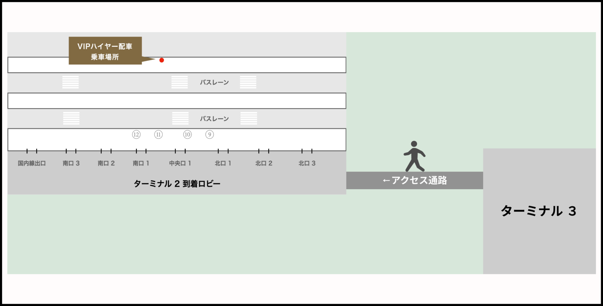 第3ターミナルにはハイヤー乗り場がございませんので、第2ターミナルにご移動の上、